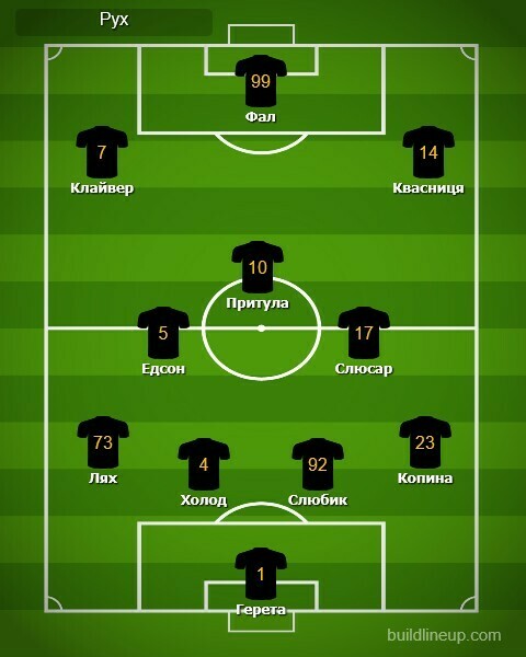 «Рух»: Герета, Холод, Слюбик, Едсон (Бойко, 86), Копина, Лях (Ясінський, 83), Притула, Слюсар (Руніч, 57), Фал, Клайвер (Алмазбеков, 83), Квасниця (Рейляну, 57).