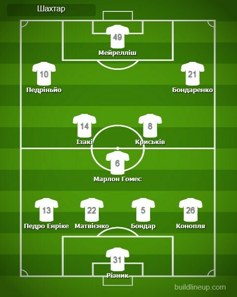 «Шахтар»: Різник, Матвієнко, Конопля (Тобіас, 71), Бондар, Педро Енріке, Марлон Гоиес (Назарина, 65), Криськів (Очеретько, 65), Педріньйо (Лукас, 86), Ізакі, Бондаренко, Мейрелліш (Швед, 65).