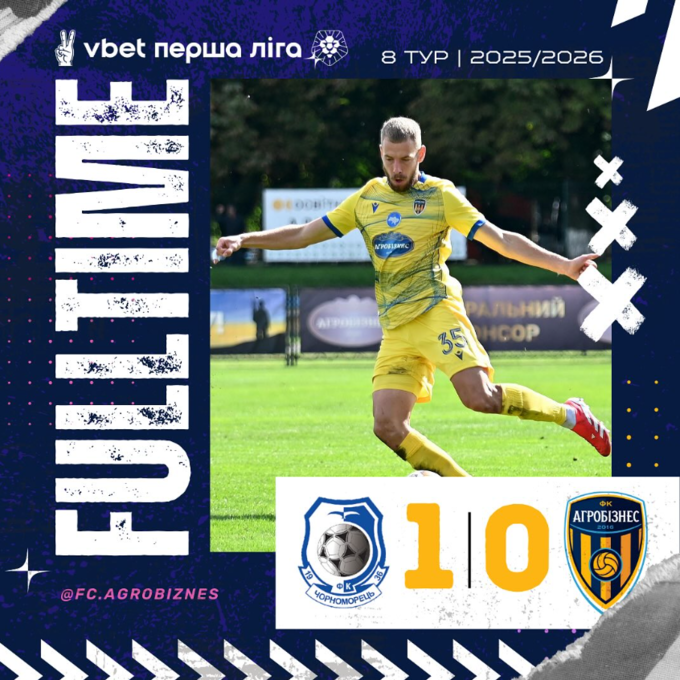 У неділю, 28 вересня, у матчі восьмого туру Першої ліги «Чорноморець» зустрівся з «Агробізнесом». Гра пройшла в Одесі на стадіоні «Чорноморець» та завершилася мінімальною перемогою господарів поля.