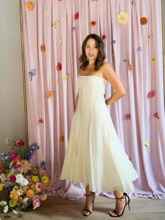 Юлія поділилася світлинами з квіткової вечірки, де позувала у довгій білій сукні та на підборах.