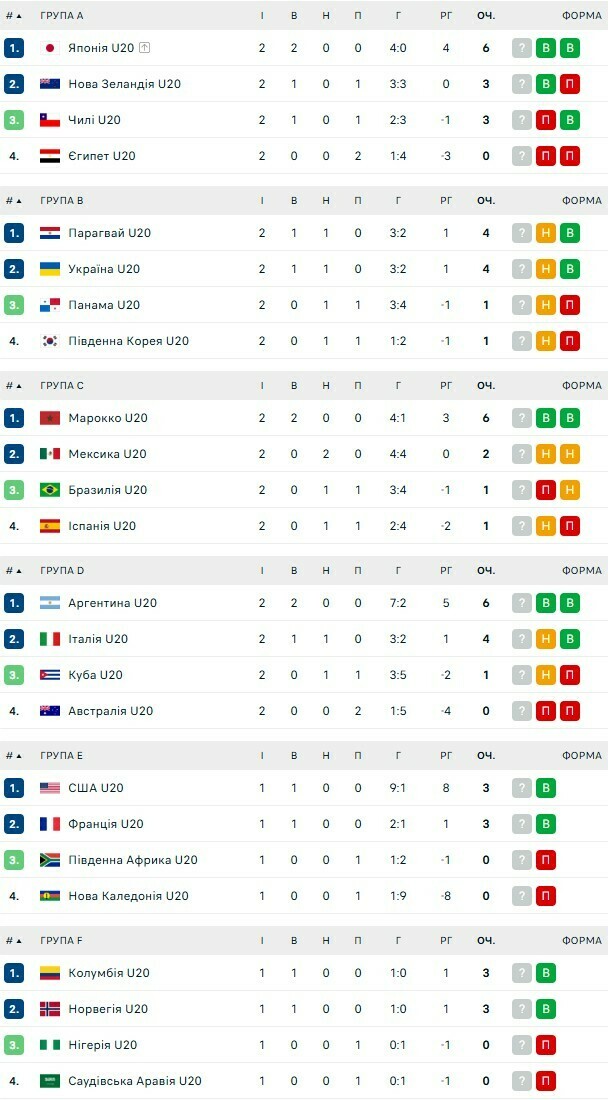 Турнірні таблиці ЧС U-20. Аргентина та Марокко – у плей-оф. Фіаско Бразилії