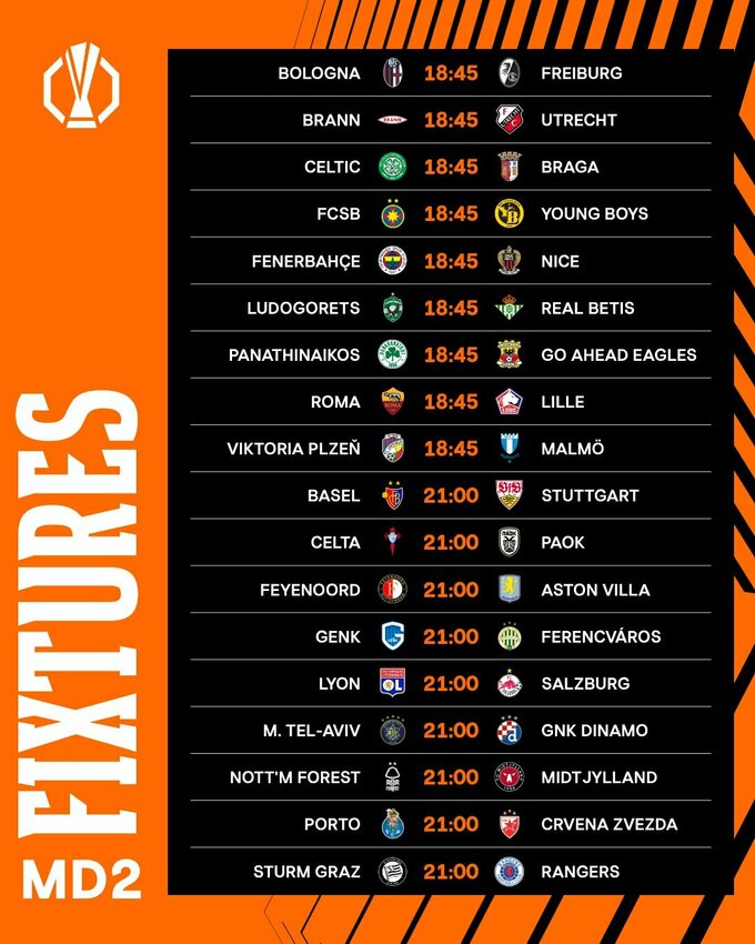 Увечері 2 жовтня відбуваються матчі 2-го туру Ліги Європи УЄФА 2025/26.