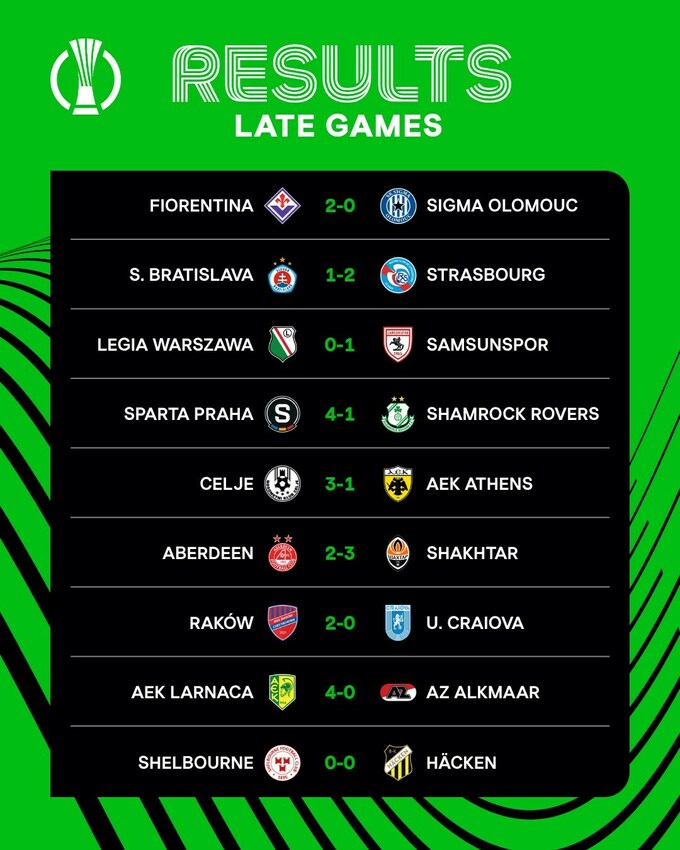 Підсумки 1-го туру Ліги конференцій. Яке місце посідають Шахтар та Динамо?
