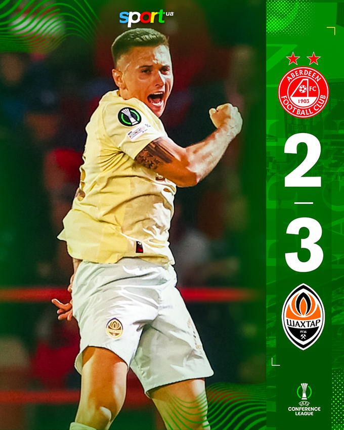 22:00. Абердін (Шотландія) – Шахтар Донецьк (Україна) – 2:3