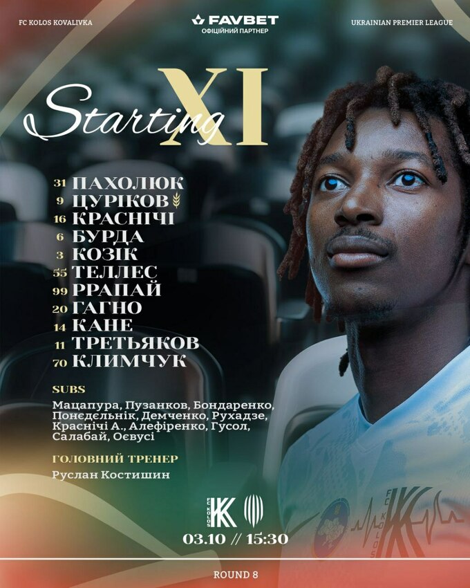 У пʼятницю, третього жовтня, ковалівський Колос на домашньому стадіоні прийматиме львівський Рух в рамках матчу восьмого туру Української Премʼєр-ліги.