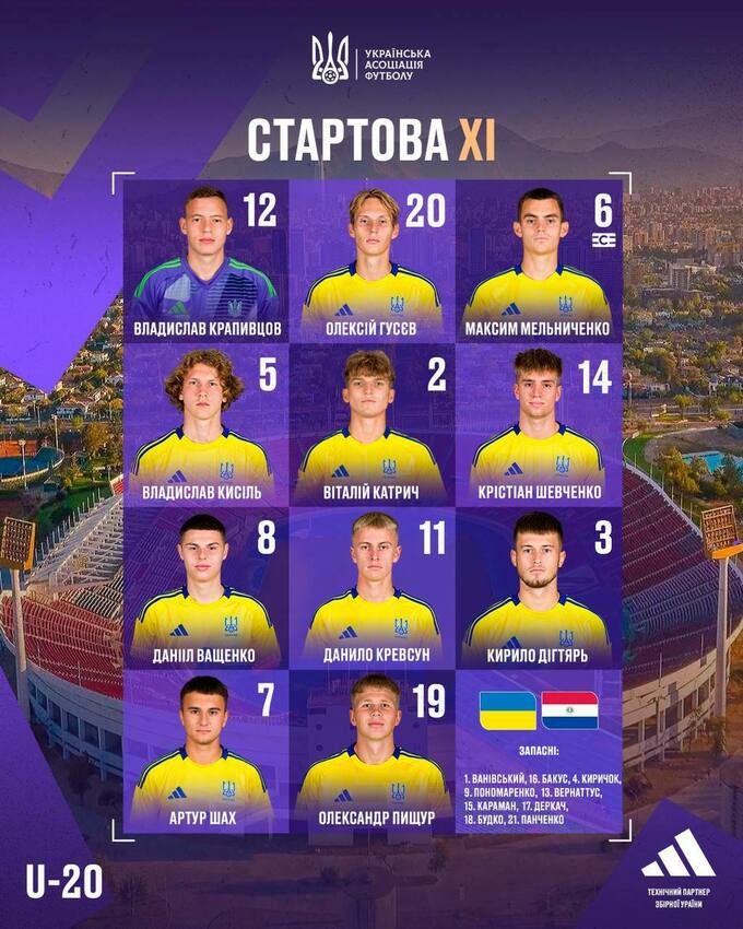 Оприлюднено склад збірної України U-20 на матч молодіжного чемпіонату світу 2025 в Чилі.