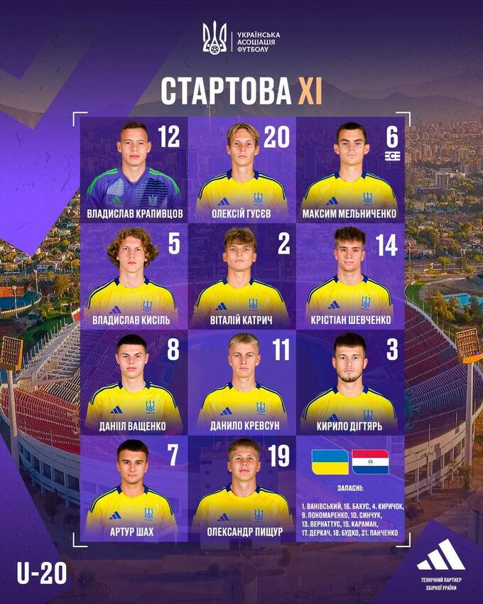 Стартовий склад України U-20 на матч з Парагваєм U-20