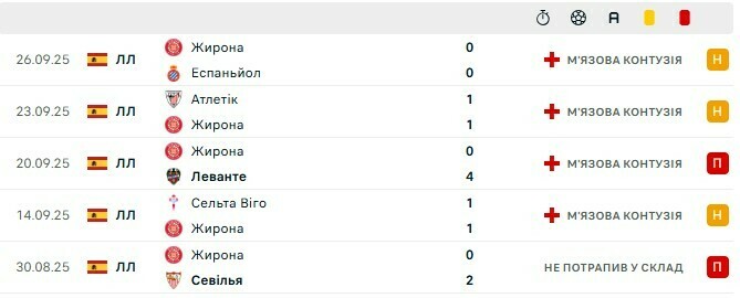 Окрім того, український голкіпер Жирони Владислав Крапивцов знаходиться зі збірною України U-20 в Чилі на молодіжному ЧС-2025.