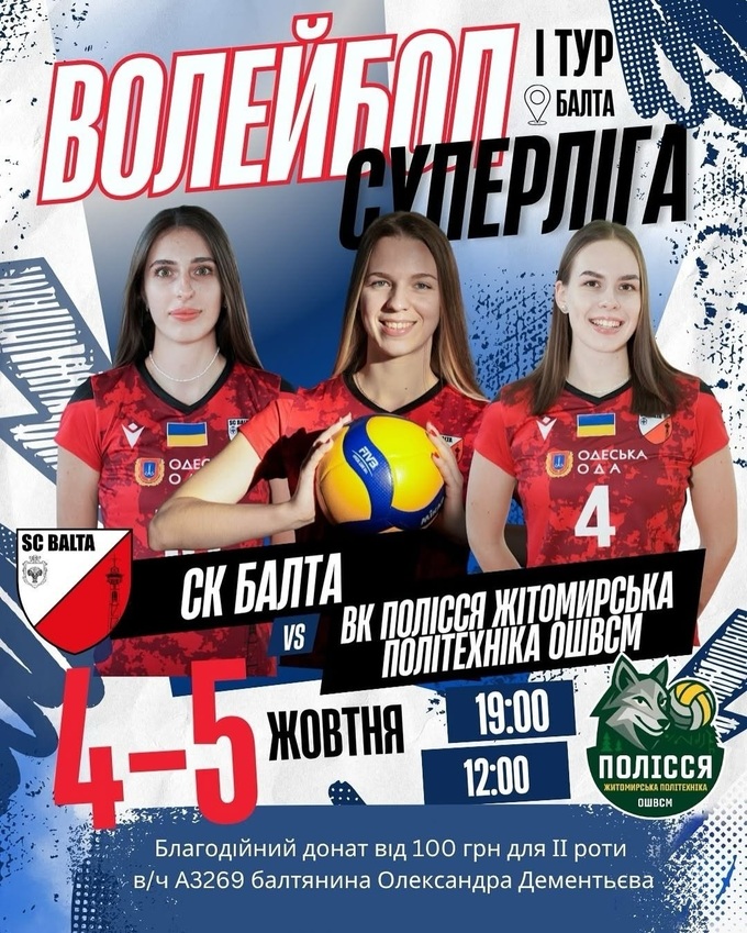 5 жовтня (неділя), 12:00 – «СК Балта» – «Полісся Житомирська Політехніка ОШВСМ»
