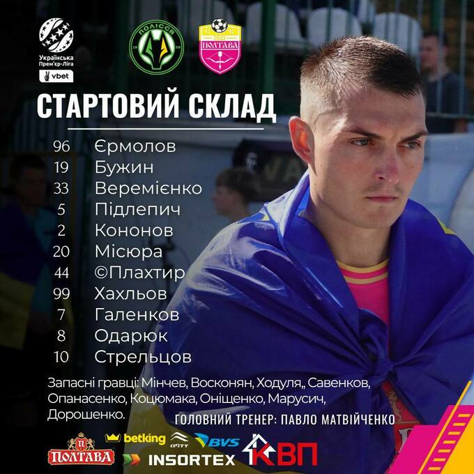 Оприлюднено стартові склади на матч «Полісся» – «Полтава»: