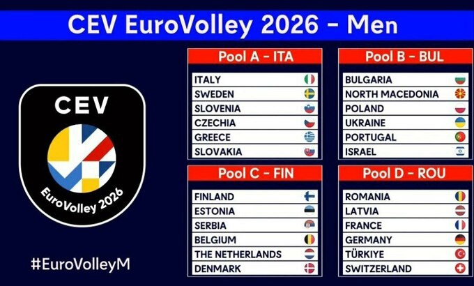 Чемпіонат Європи з волейболу серед чоловіків пройде з 9 по 27 вересня. Жеребкування групового етапу турніру відбулося сьогодні в італійському місті Барі.