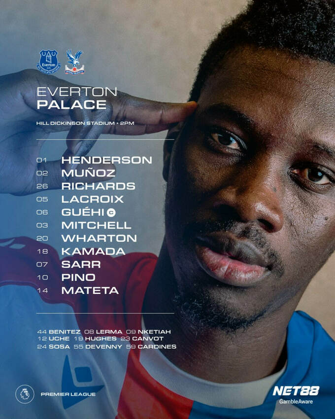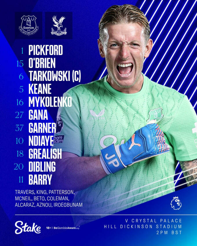 Стартові склади команд на поєдинок «Евертон» – «Крістал Пелас»