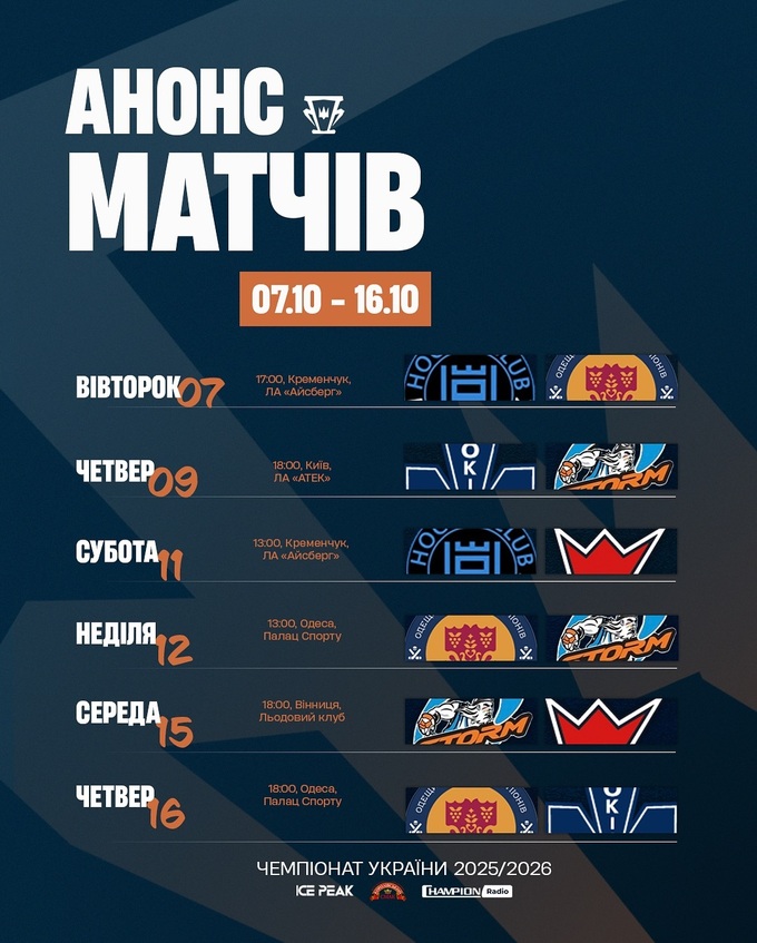 Після того, як у вересні відбувся розіграш Кубка України, 7 жовтня стартував чемпіонат країни з хокею. У першому матчі зіграли Кременчук та новачок сезону Одещина.