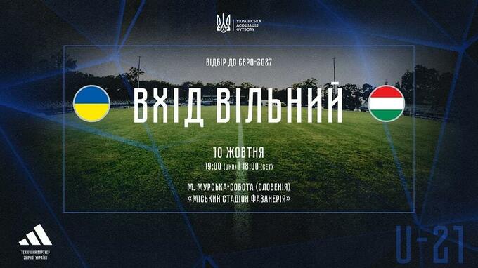 10 жовтня у словенському місті Мурска Собота на стадіоні «Фазанерія» молодіжна збірна України U-21 проведе матч відбору Євро-2027 U-21 проти команди Угорщини U-21.