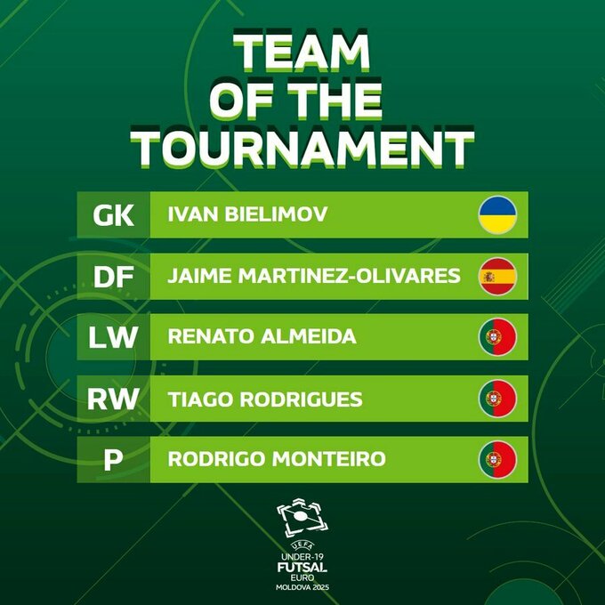 Переможцем турніру стала команда Португалії, 3 з 4 універсалів у символічній збірній зайняли саме її футболісти: Ренато Альмейда, Тіаго Родрігес, Родріго Монтейро.