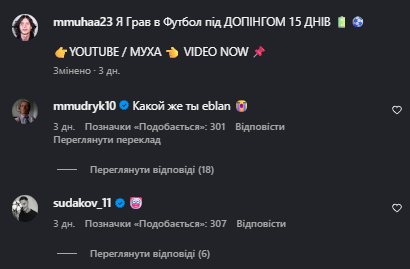 Серед коментаторів публікації можна побачити і півзахисника «Бенфіки» Георгія Судакова, який просто залишив у коментарях емодзі клоуна.