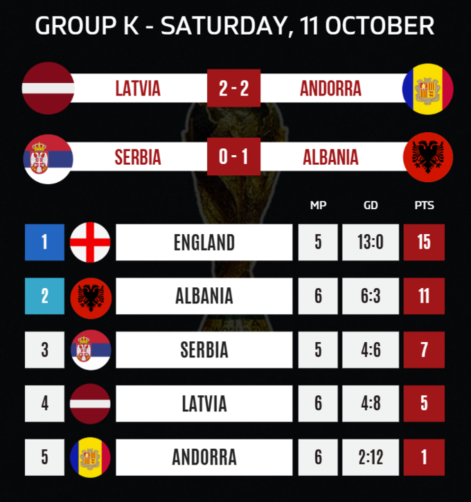 21:45. Сербія – Албанія – 0:1