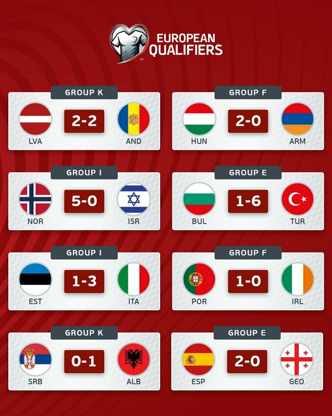 Увечері 11 жовтня відбулися чергові поєдинки кваліфікації ЧС-2026 у зоні УЄФА.