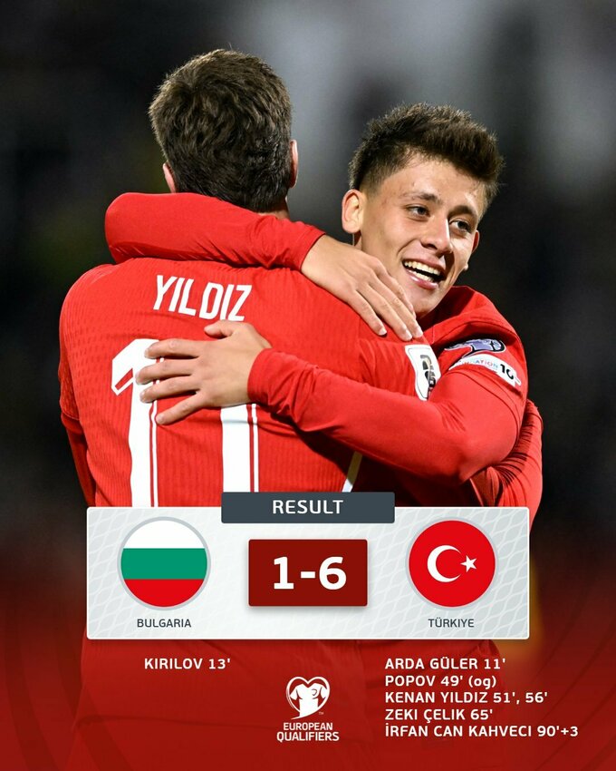 Голи: Кірілов, 13 – Гюлер, 11, Попов, 49 (автогол), Їлдиз, 51, 56, Челік, 65, Кахведжі, 90+3