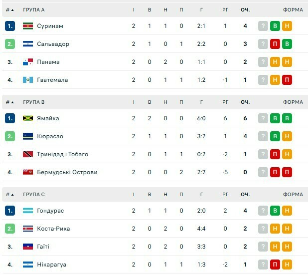Кваліфікація ЧС. Турнірні таблиці в зоні КОНКАКАФ: відбулося два тури