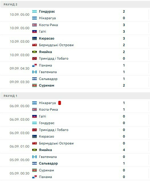 У зоні КОНКАКАФ: відбулося два тури, нижче наведені результати.