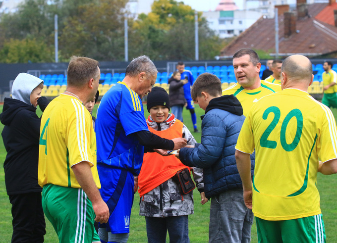 У складі збірної ветеранів вийшли на поле відомі українські футболісти: Мирон Маркевич, Едуард Цихмейструк, Сергій Погорілий, В’ячеслав Свідерський, Юрій Максимов, Геннадій Медведєв, Віталій Самойлов, Сергій Задорожний, Андрій Полунін, Іван Кривошеєнко, Володимир Лисенко та Костянтин Сахаров. Голи у ворота господарів забили Володимир Лисенко, Віталій Самойлов і Юрій Максимов.
