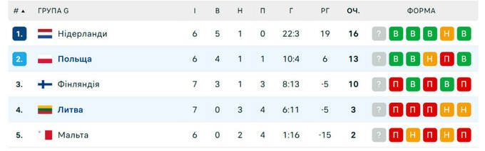 Турнірна таблиця: