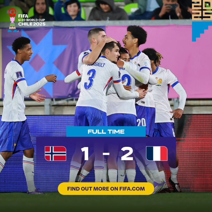 Французька команда здолала у чвертьфіналі Норвегію U-20 з рахунком 2:1.