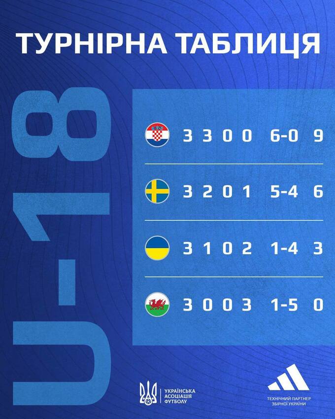 Юнацька збірна України U-18 (гравці 2008 р.н.) під час навчально-тренувального збору в Хорватії завершила товариський турнір матчем проти однолітків зі Швеції.