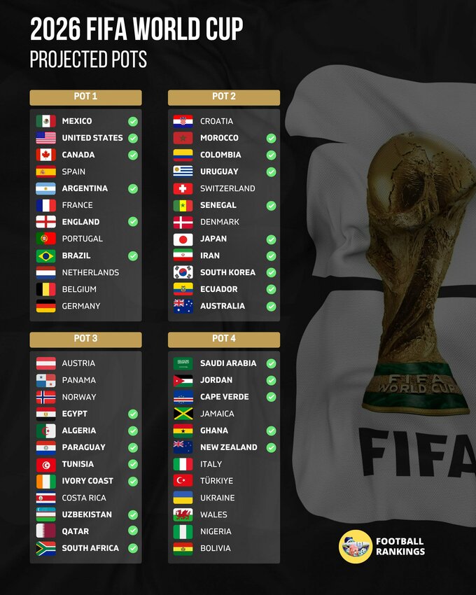 Від Африки на ЧС-2026 вийшли дев'ять команд: Єгипет, Сенегал, ПАР, Кабо-Верде, Марокко, Кот-д'Івуар, Алжир, Туніс, Гана.