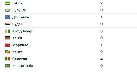 Сенегал розгромив Мавританію (4:0), а Кот-д’Івуар завдав поразки Кенії (3:0).