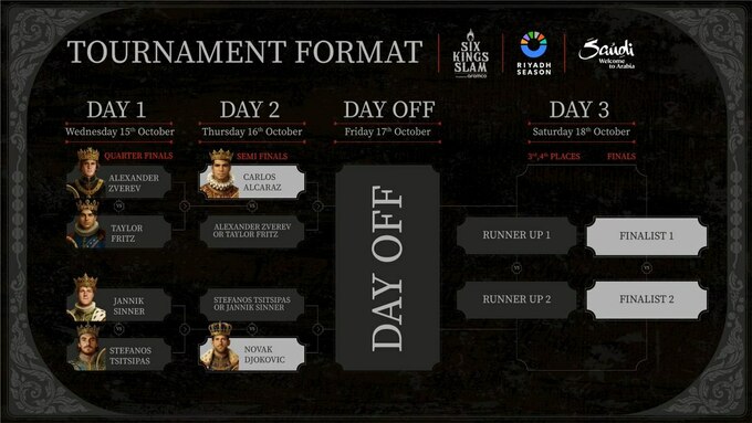 Алькарас і Джокович стартуватимуть з півфіналу, а інші учасники почнуть виступи з чвертьфіналу. Переможець пари Фрітц – Звєрєв вийде на Карлоса, а кращий у парі Циципас – Сіннер побореться з Новаком.