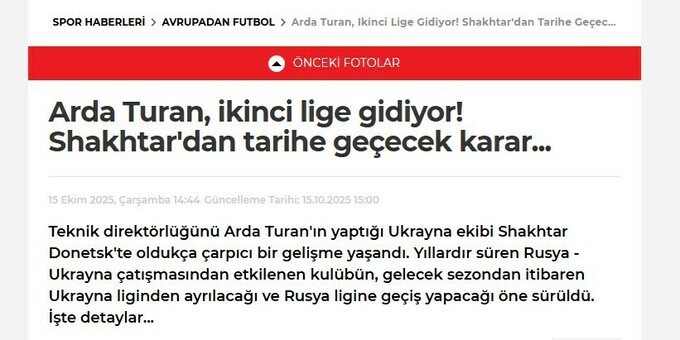 В українському клубі Шахтар Донецьк, яким керує Арда Туран, відбулася доволі гучна подія. За повідомленнями, клуб, що постраждав від багаторічного конфлікту між росією та Україною, з наступного сезону планує вийти з української ліги та перейти до російської.