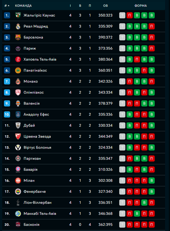 Євроліга. Регулярний сезон. 4 тур, 14 жовтня 2025