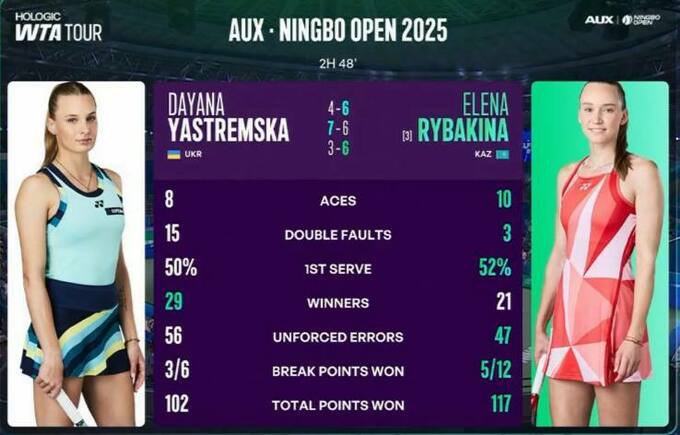 Українська тенісистка Даяна Ястремська (WTA 30) завершила виступи на хардовому турнірі WTA 500 в Нінбо, Китай.