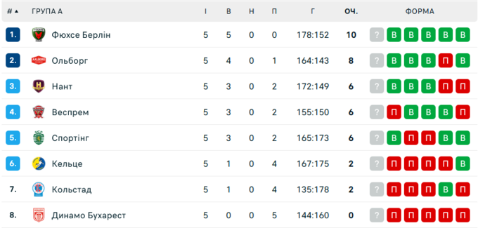 - Фюхсе Берлін – Кольстад – 38:27 (19:14)