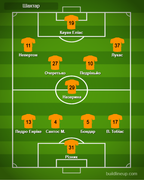 «Шахтар»: Різник – Педро Енріке, Марлон Сантос (Матвієнко, 65), Бондар, Тобіас – Очеретько (Бондаренко, 46), Назарина, Педріньйо (Ізакі, 84) – Невертон, Кауан Еліас (Егіналду, 65), Лукас (Мейрелліш, 74).