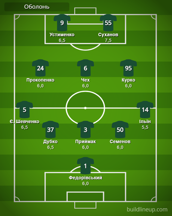 «Оболонь» (заміни): Бичек – 6,0, Товарчі – 6,0, Черненко – б/о, Ломницький – б/о.