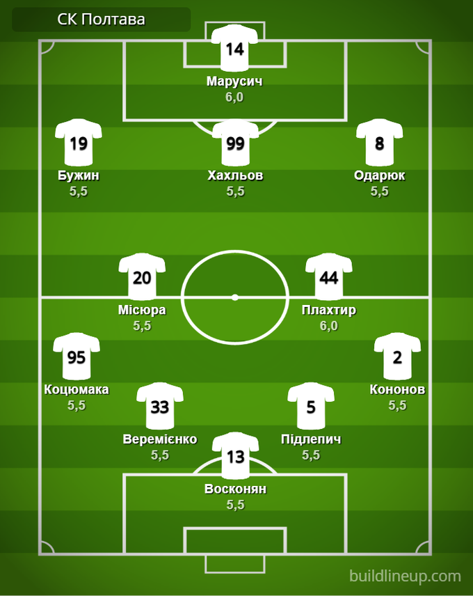 СК «Полтава»: Восконян – Коцюмака (Галенков, 73), Веремієнко, Підлепич, Кононов – Місюра (Оніщенко, 73), Плахтир – Бужин, Хахльов (Дорошенко, 73), Одарюк – Марусич.