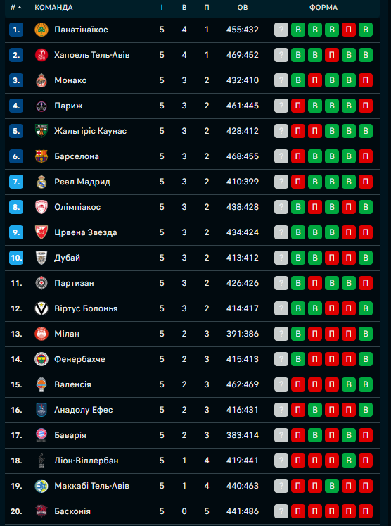Євроліга. Регулярний сезон. 5-й тур, 17 жовтня 2025