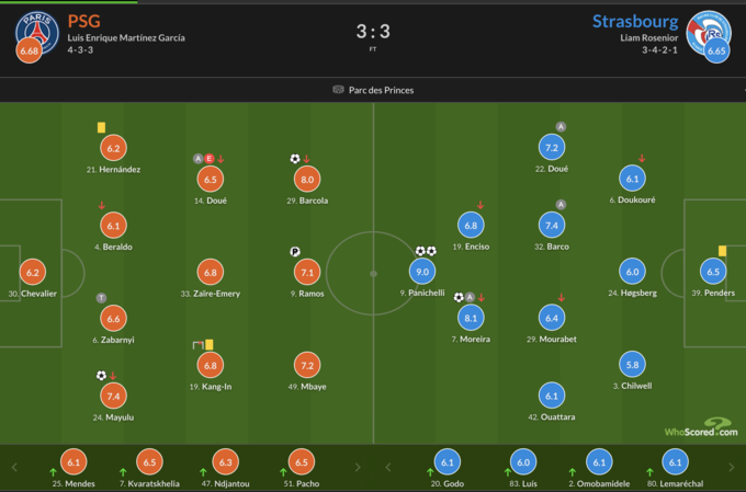 Героєм зустрічі було визнано нападника Хоакіна Панічеллі, який відзначився двома голами за «Страсбург». SofaScore поставив нападнику оцінку 8.8, а WhoScored – 9.0