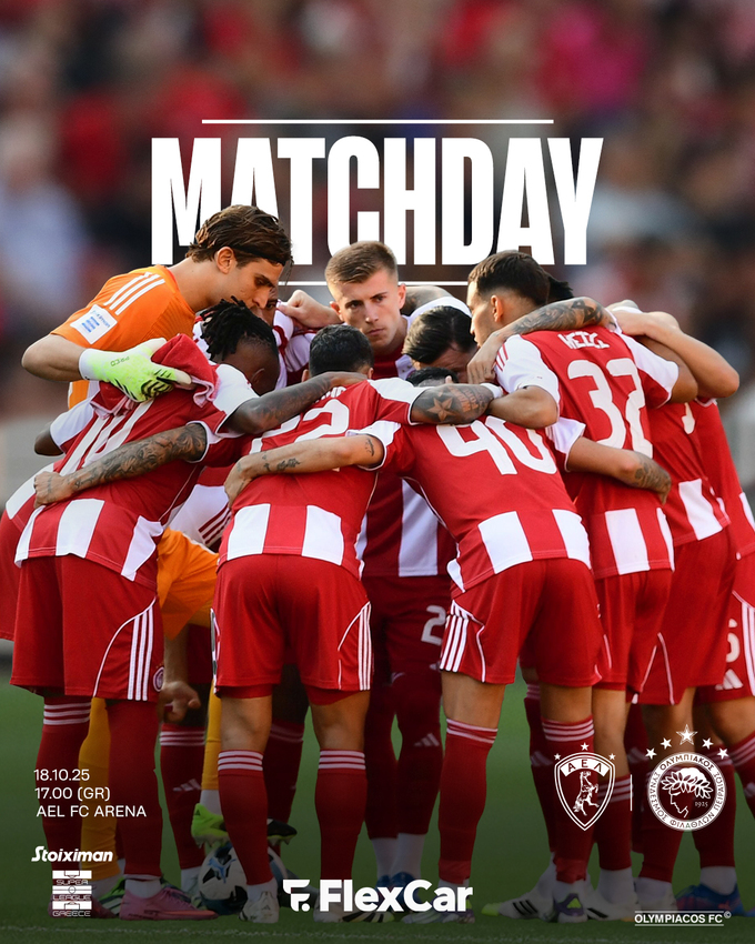 «Олімпіакос» зіграє виїзний матч проти «Ларісси». Зустріч відбудеться 18 жовтня о 17:00 у Ларіссі.