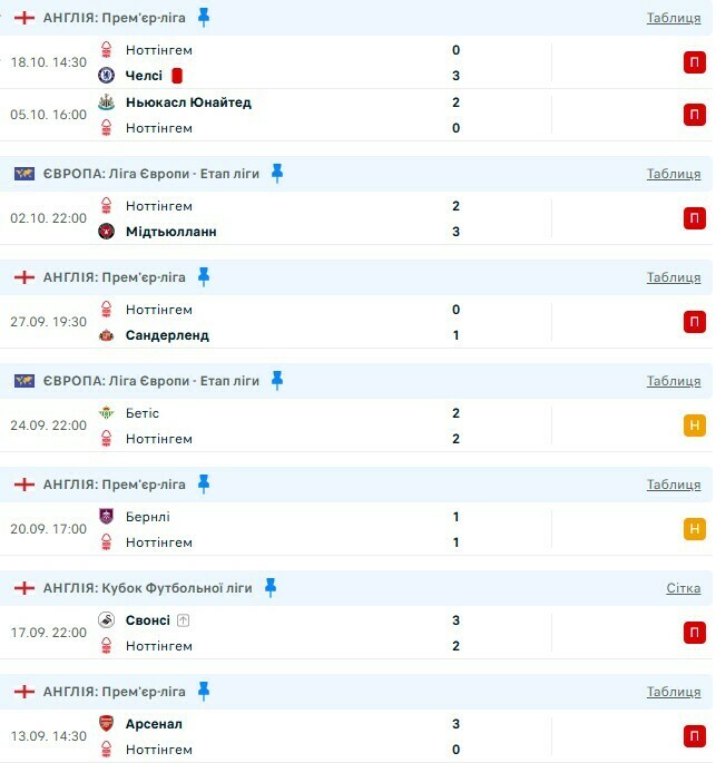 «Ноттінгем Форест» зазнав шість поразок. З позитивних результатів – нічиї з «Бетісом» (2:2) у Лізі Європи та з «Бернлі» (1:1) в АПЛ.