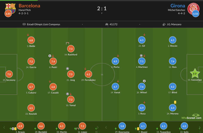Повернувся на поле після травми вінгер «Жирони» Віктор Циганков, який вийшов на поле на 63-й хвилині та отримав оцінку 6.1
