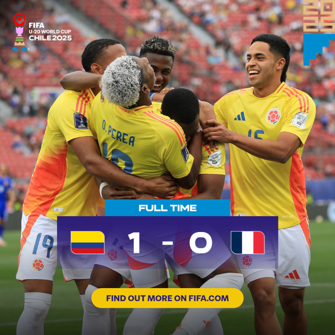 У матчі за 3-тє місце молодіжного чемпіонату світу U-20 збірна Колумбії обіграла команду Франції з рахунком 1:0.