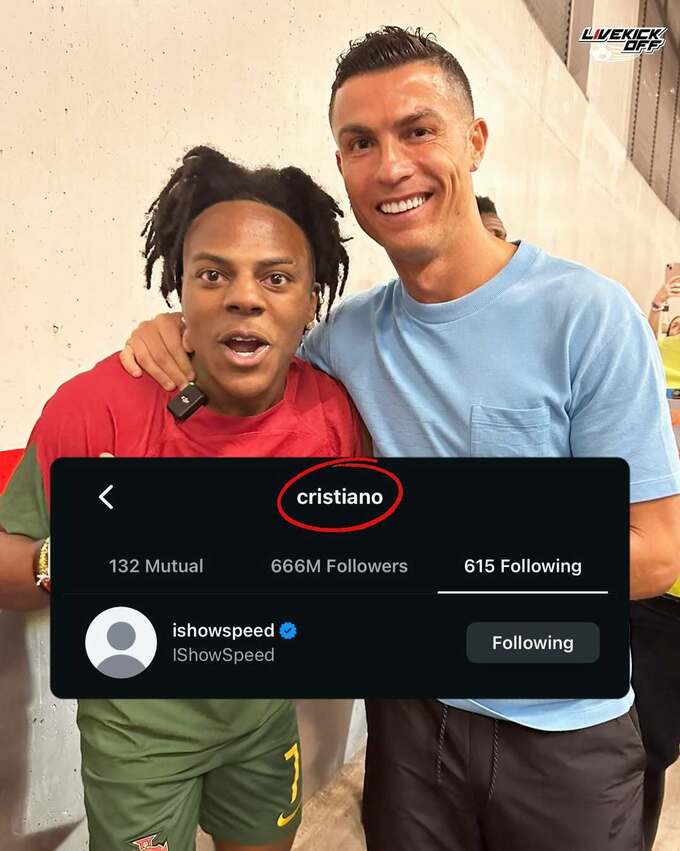 Кріштіану Роналду підписався на американського блогера IShowSpeed в Instagram.