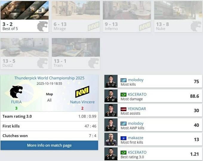 На вирішальному Train саме YEKINDAR став героєм фіналу: ледь не зробив ейс у пістолетному раунді й разом із molodoy довів справу до перемоги. FURIA виграли серію та підняли свій другий трофей сезону, тоді як NAVI залишилися з розбитими сподіваннями після блискучого старту.