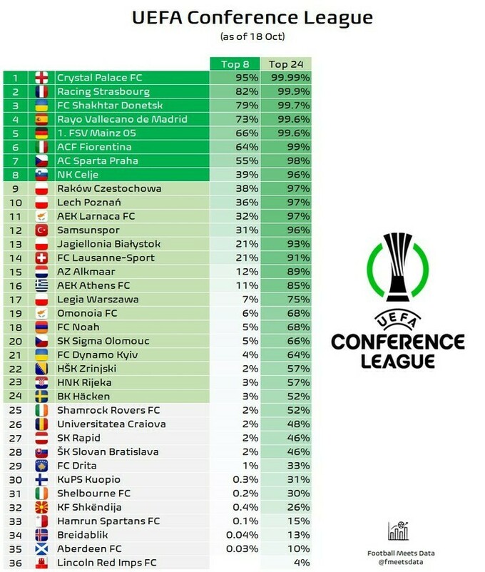 Шанси команд на вихід в плей-офф Ліги конференцій (за версією Football Meets Data)