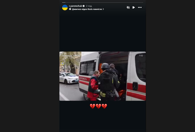 Публікуючи звернення Зеленського у своїх сторіс, українські футболісти додали емодзі із розбитими серцями – як символ скорботи.