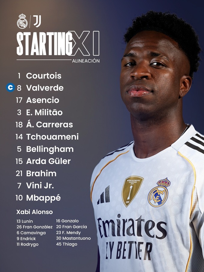 «Реал» Мадрид: Куртуа, Мілітао, Беллінгем, Вінісіус, Вальверде, Мбаппе, Тчуамені, Гюлер, Асенсіо, Фернандес, Діас.